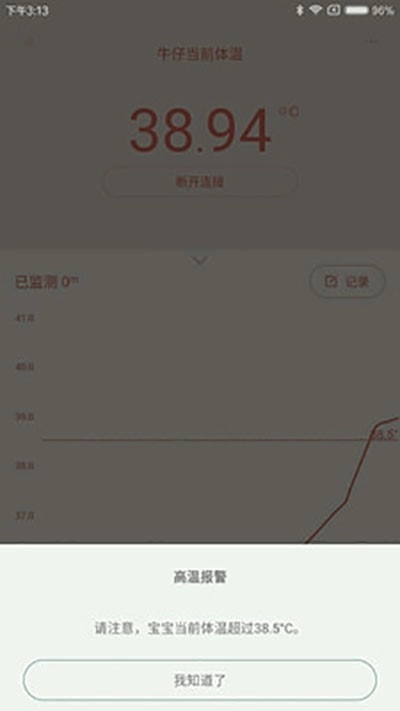 2、打开应用,测量的温度会实时传输到平板或手机上,以便监测温度的实时变化。