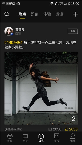 2、点开极客,你可以在这里看到其他车友发的各种动态,可以进行评论和关注;
