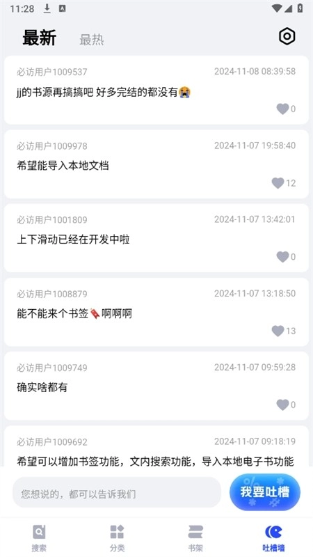 6、点击吐槽墙,大家在这里可以尽情吐槽,也可以查看其他用户的吐槽内容