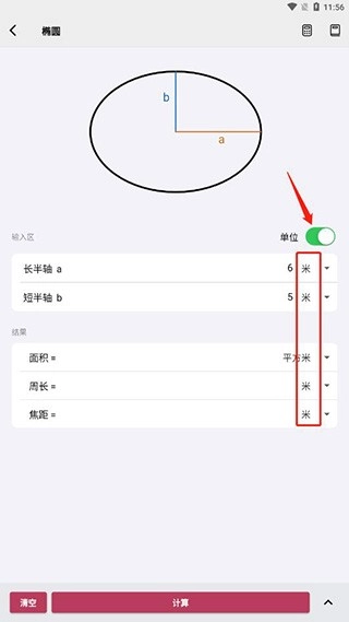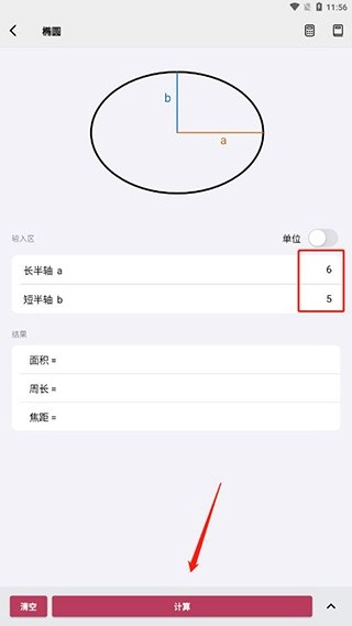 2、选择一个你要计算的图形,在输入区输入它的数值,点击计算;