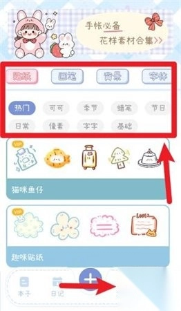 2、用户可以对记录的内容自由使用贴纸进行装饰。