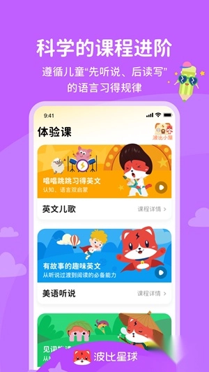 波比星球是一款专门为儿童量身定制的趣味英语学习软件。它借助科学的教学模式,打造出一套完整的英语启蒙学习闭环。软件运用生动有趣的互动形式,为孩子们营造出轻松愉悦的学习氛围,助力他们在玩乐过程中自然而然地掌握英语词汇以及基础语言知识。其丰富多元的内容设计,能够切实有效地激发孩子的学习兴趣,让英语启蒙这件事变得既简单又充满趣味。