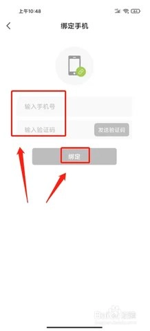 进入绑定手机,输入手机号、验证码,点击【绑定】。