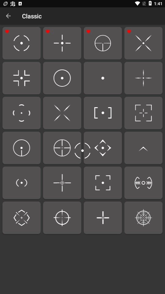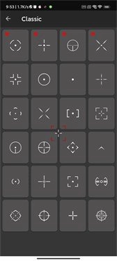 1、启动准星瞄准器后,可在界面中浏览并选择多款准星样式,支持快速切换,适用于多种射击类游戏场景。