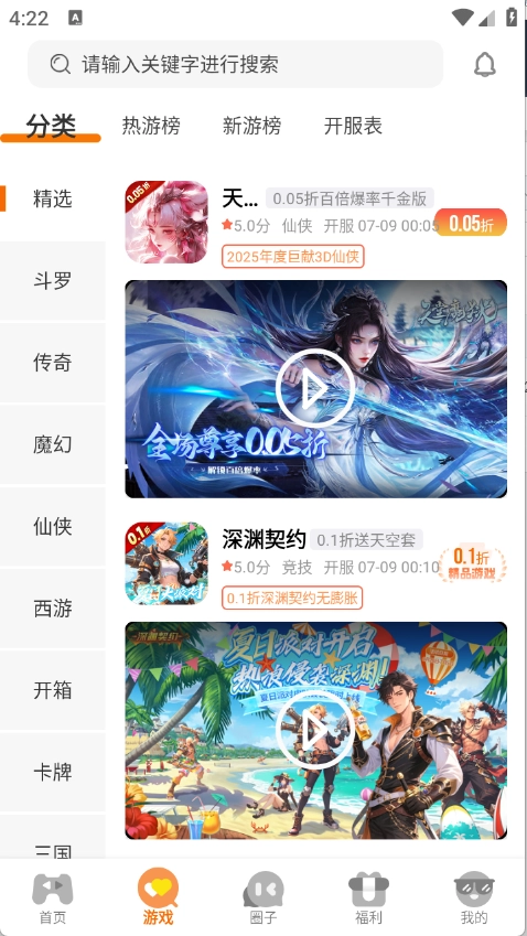 3.游戏页面可以将游戏进行了详细的归类,不管是三国、玄幻还是传奇等类型都有