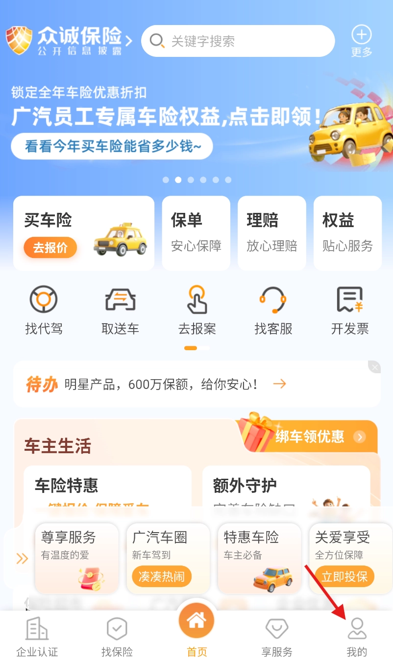 1. 开启众诚保险,于主界面下方找寻“我的”选项,然后轻轻点击,进入个人页面。