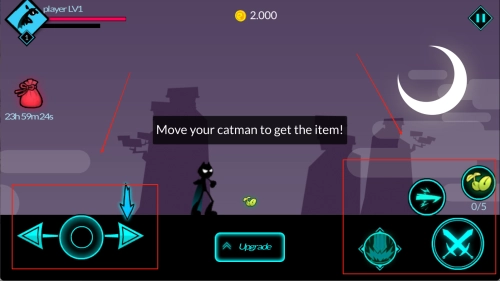 1. 左侧用于控制角色移动,右侧则设置了各类功能键与技能按键。
