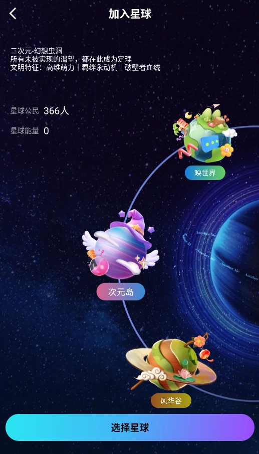 1. 启动之后,于星球选择界面浏览,点击自己感兴趣的星球,进而进入创建流程。