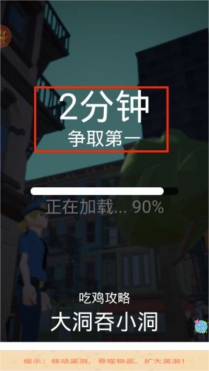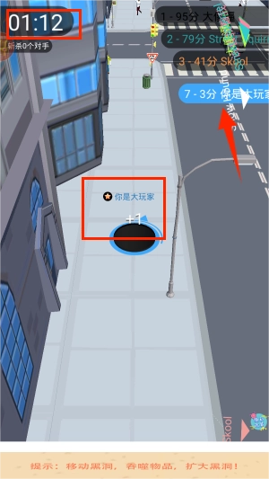 3、左上角是倒计时,右边是排名,可以通过不断吞噬物品壮大自己。