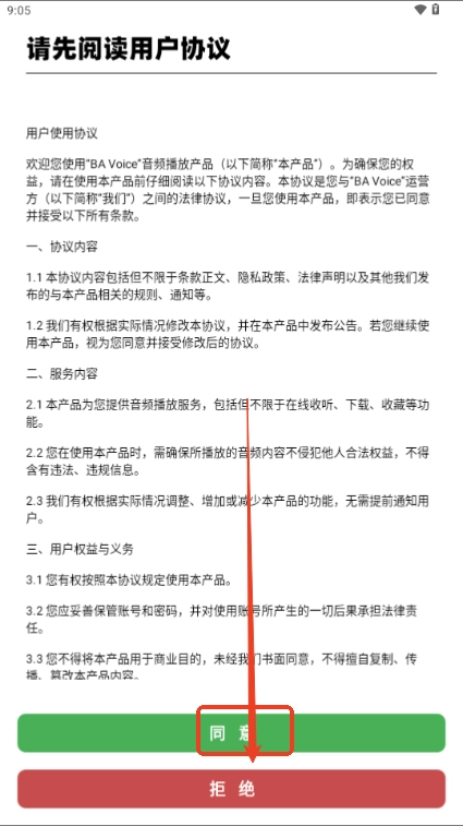 1、进入本站BA Voice软件后,同意用户隐私政策。
