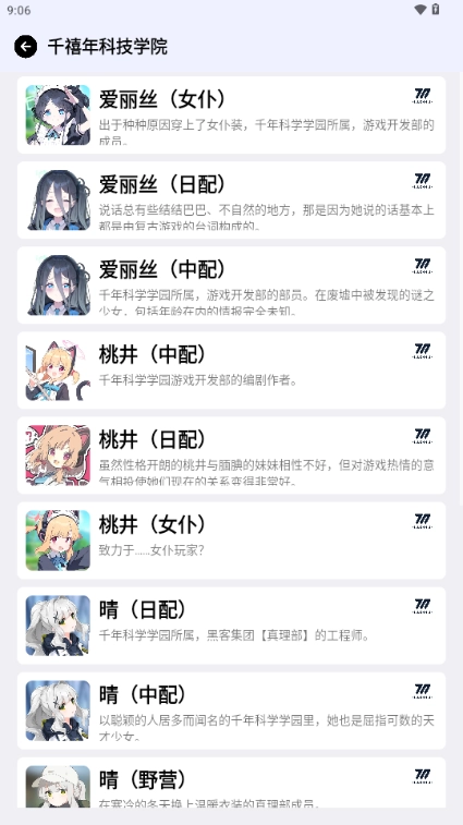2、其他学院的语音都是配音,点击任意一个学院即可进入到角色选择页面